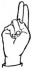 На ћирилици написано ЊЕГОСЛАВ ГЛОБОДЕРСКИ састоји се из 19 слова [?]. Исписано ћириличном једноручном азбуком за глувонеме: